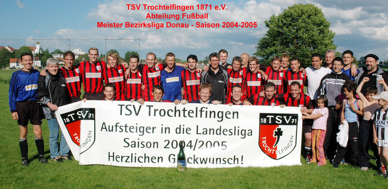 TSV Trochtelfingen 1871 e.V. Meister Bezirksliga Donau Saison 2004/05 nach dem Meisterstück mit dem 7:0 Erfolg bei der SG Dettingen(Ehingen) nach der Wimpelübergabe durch Staffelleiter Jürgen Amendinger.